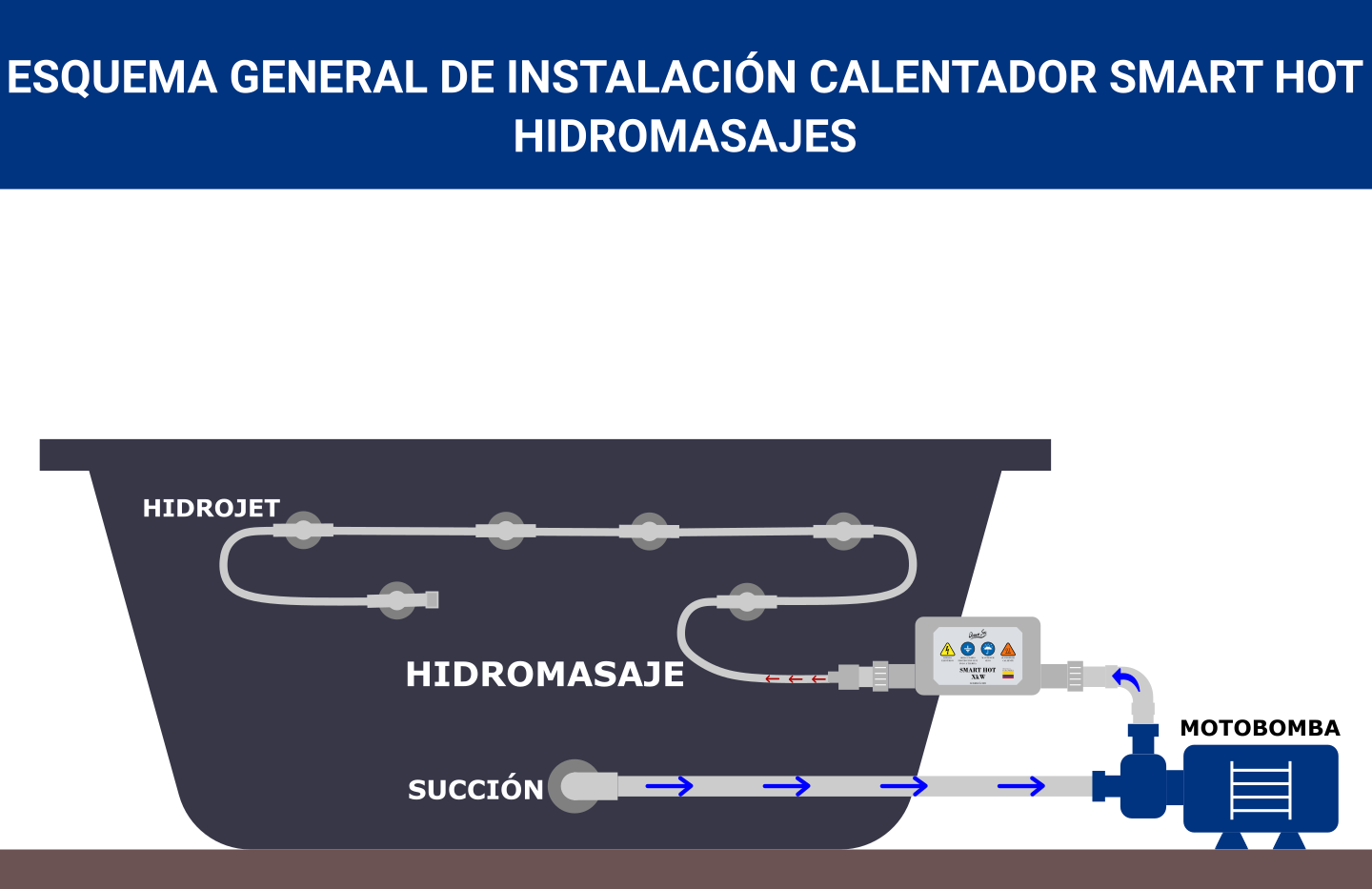 Utiliza este esquema como una guía de instalación del calentador para jacuzzi SMART HOT.